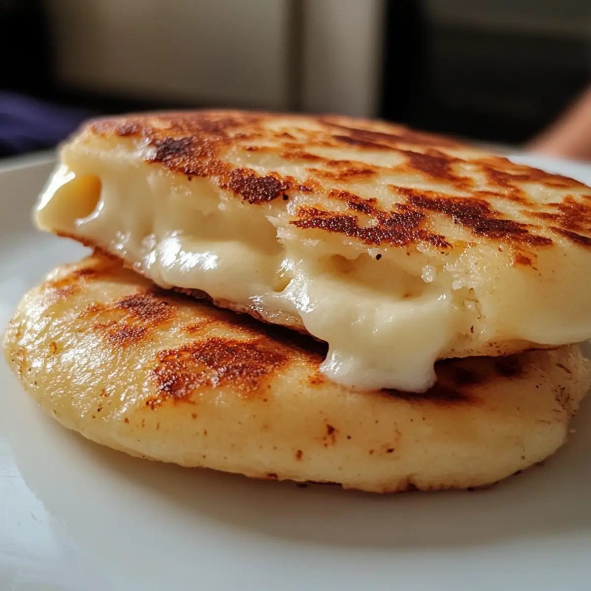 Once cooked, remove the arepas from the skillet and place them on a paper towel to absorb any excess oil. Serve warm, optionally topped with a pat of butter or your favorite salsa for added flavor. Each bite delivers a crispy exterior and a gooey, cheesy center, making these Arepas con Queso a comforting delight for any meal of the day.