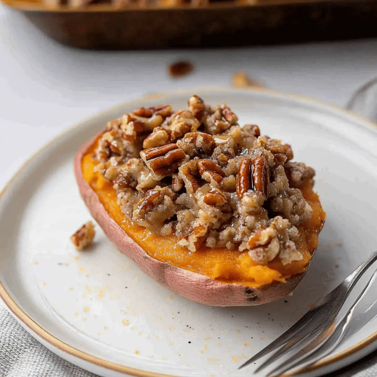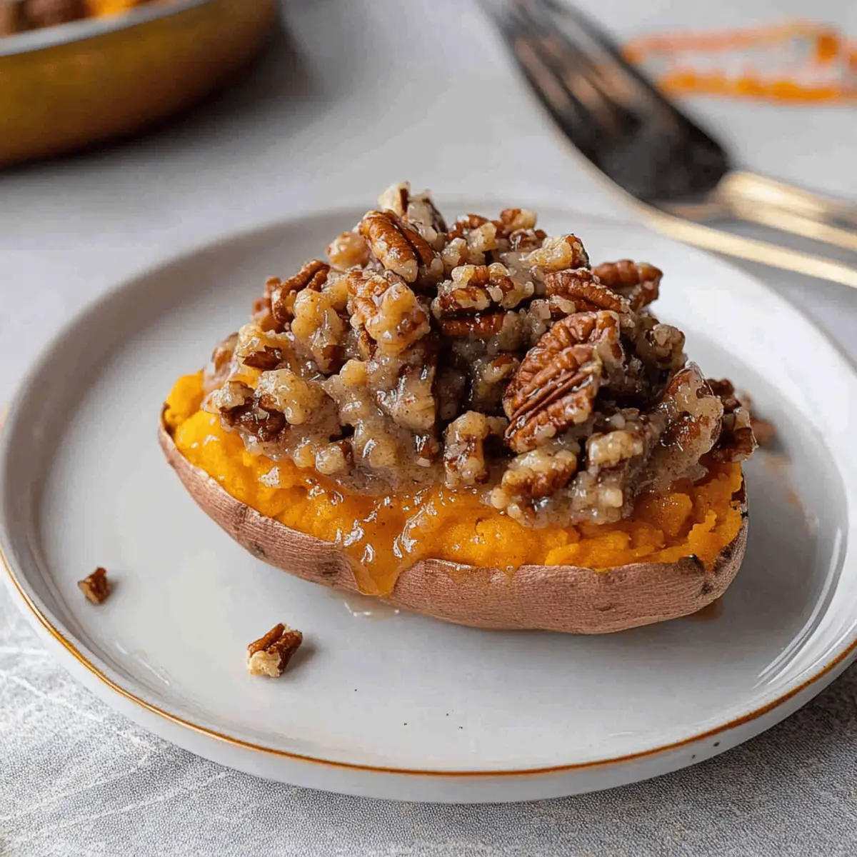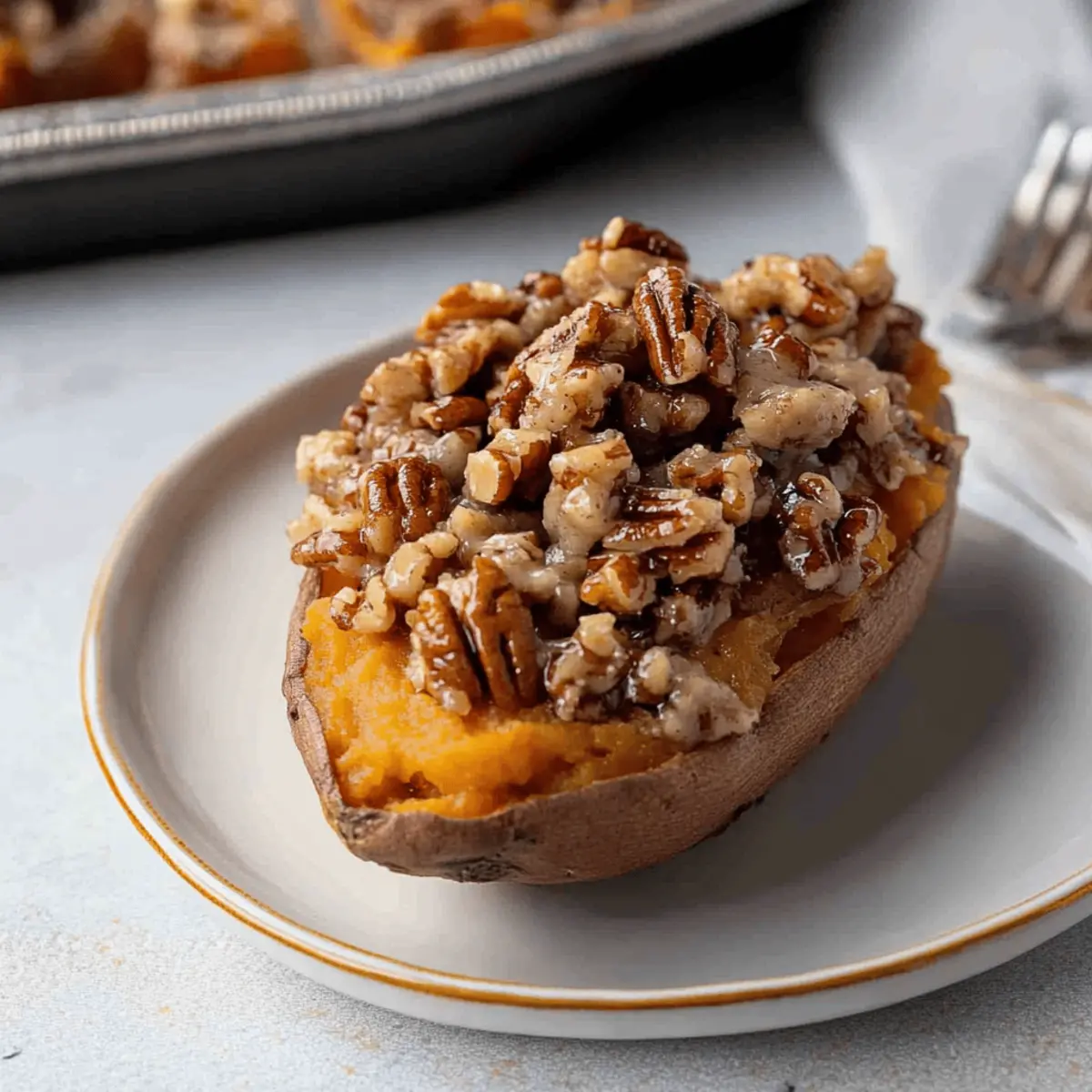 Baked Sweet Potatoes with a Pecan Pie Twist for Fall Fun