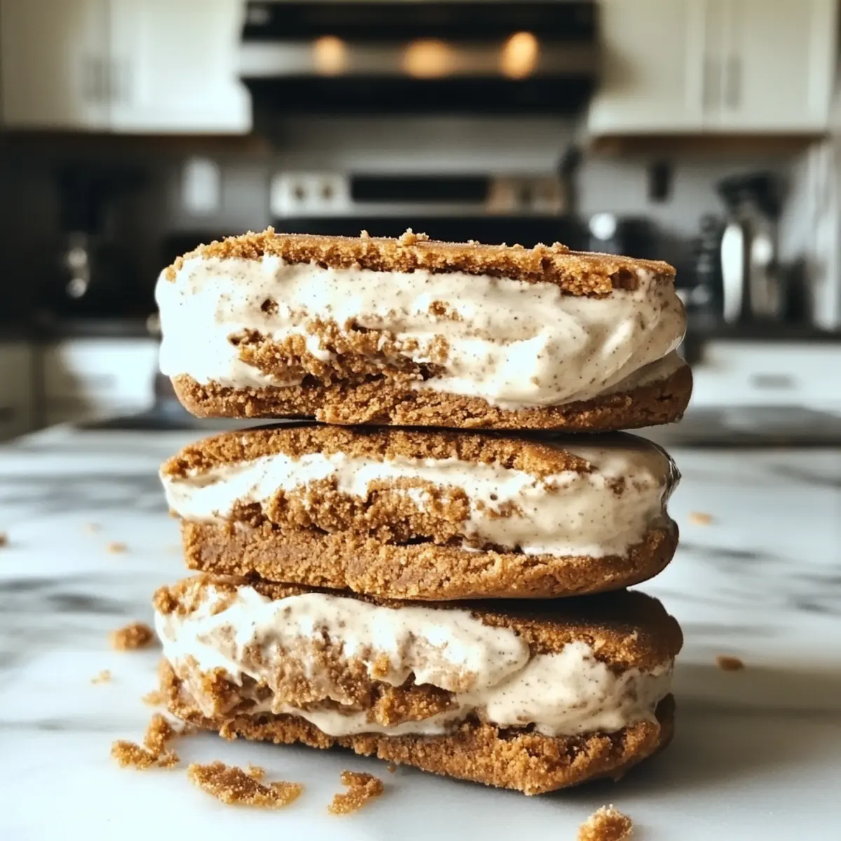 Serving Tip: For a delightful presentation, slice the sandwiches just before serving, showcasing those scrumptious layers of Biscoff ice cream and cookies!