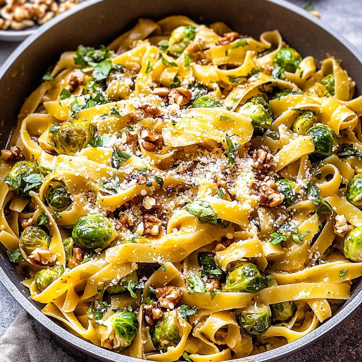 This Brown Butter Brussels Sprouts Pasta is vegetarian, but you can easily tweak it for different dietary needs. If you’re concerned about gluten, you can swap pappardelle for a gluten-free pasta. For nut allergies, simply omit the toasted walnuts or substitute with seeds like pumpkin or sunflower.
