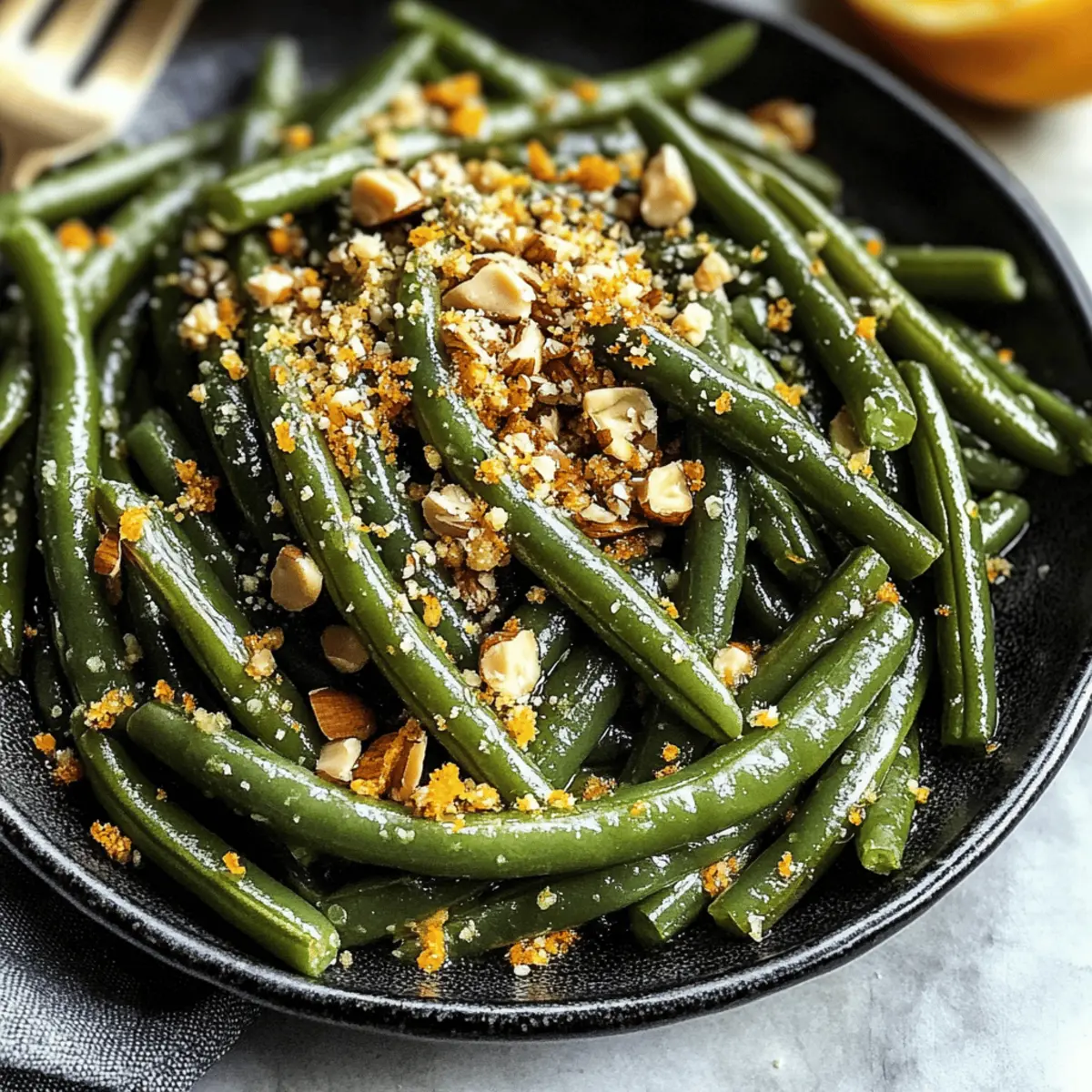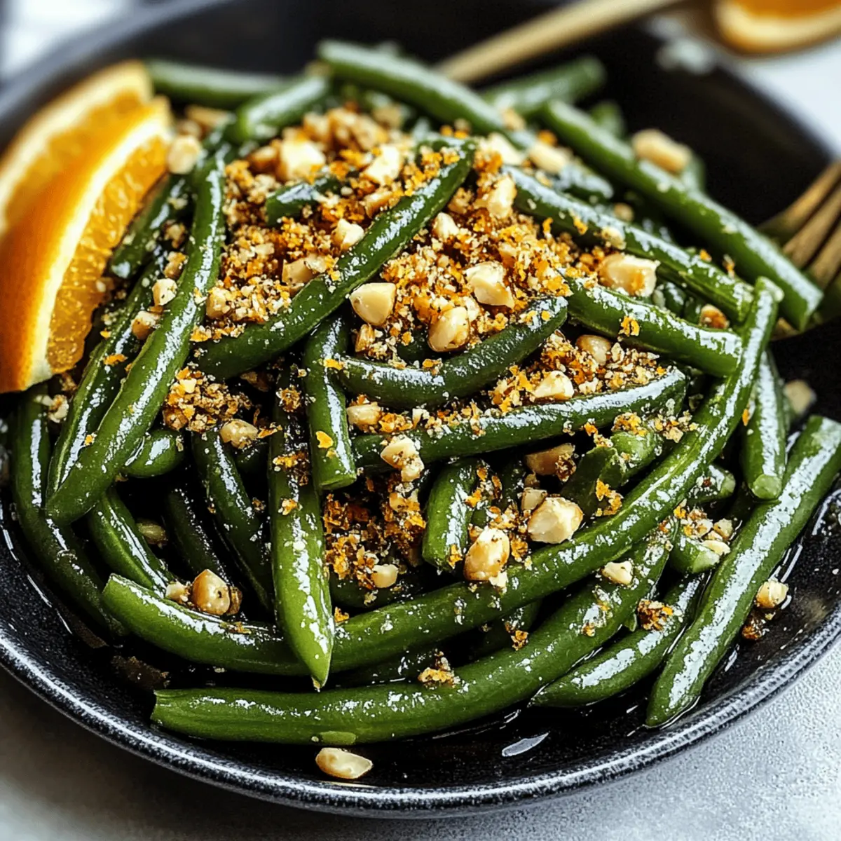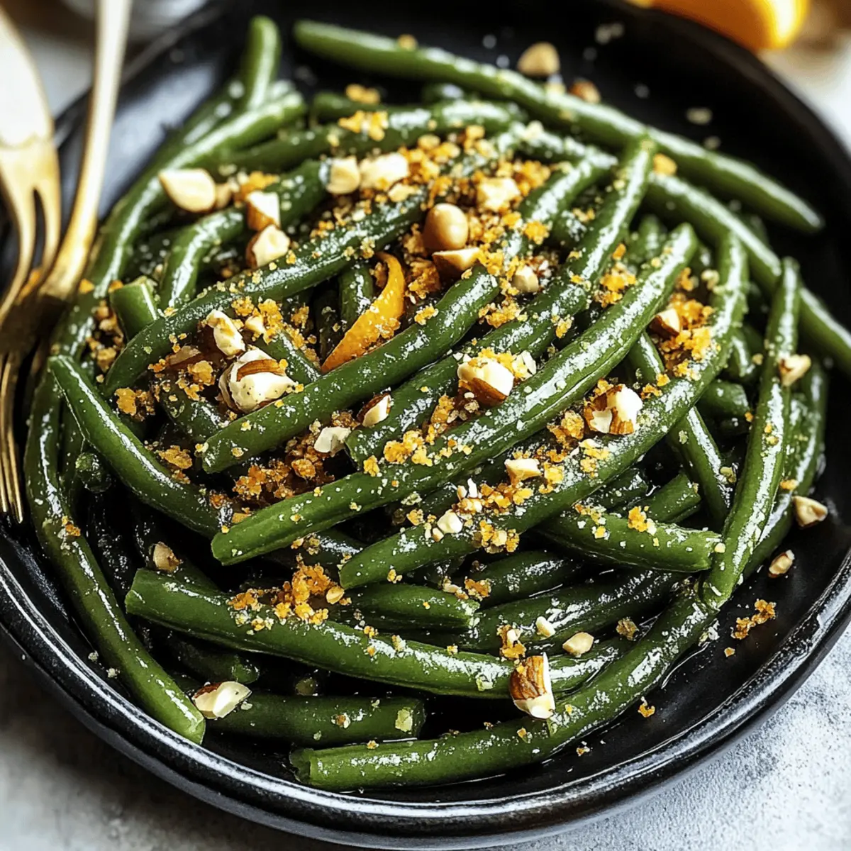 Transfer the sautéed green beans to a serving platter and generously sprinkle the prepared hazelnut dukkah over the top. For an extra burst of flavor, add a sprinkle of fresh orange zest. The combination of the nutty dukkah and the zesty finish will make your Browned Butter Green Beans truly irresistible.
