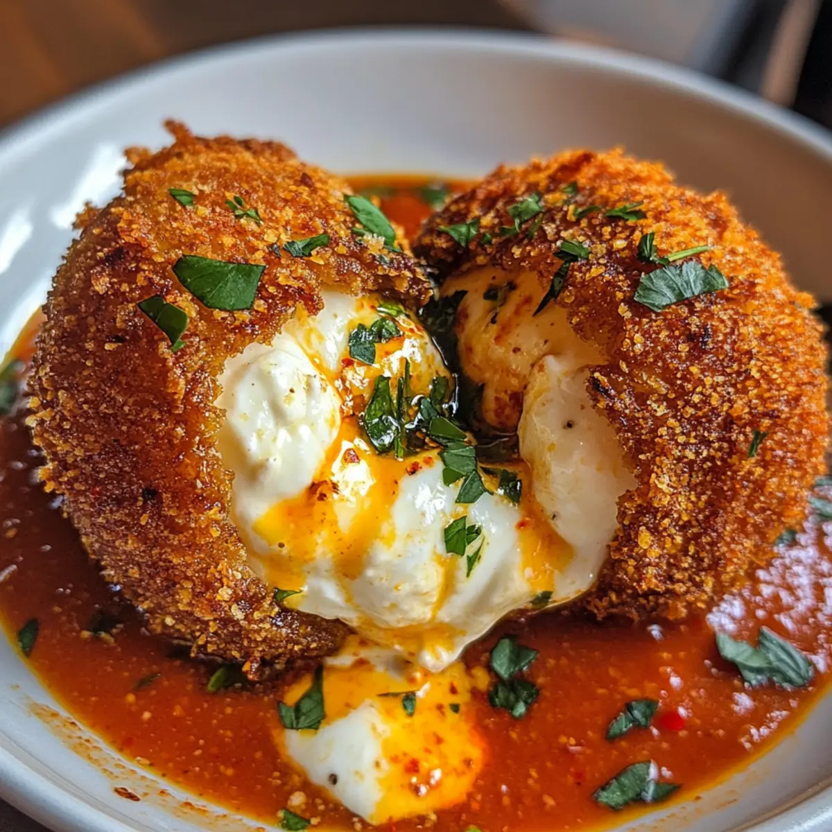 Double-Dip for Extra Crunch: For maximum crispiness, consider double-dipping the burrata in the egg and breadcrumbs. It creates a thicker, crunchier crust.