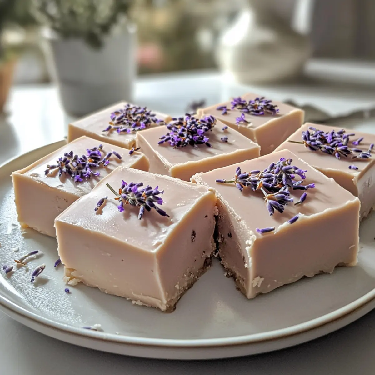 - Optionally, sprinkle some dried lavender on top before letting the fudge cool at room temperature for about 2-3 hours.