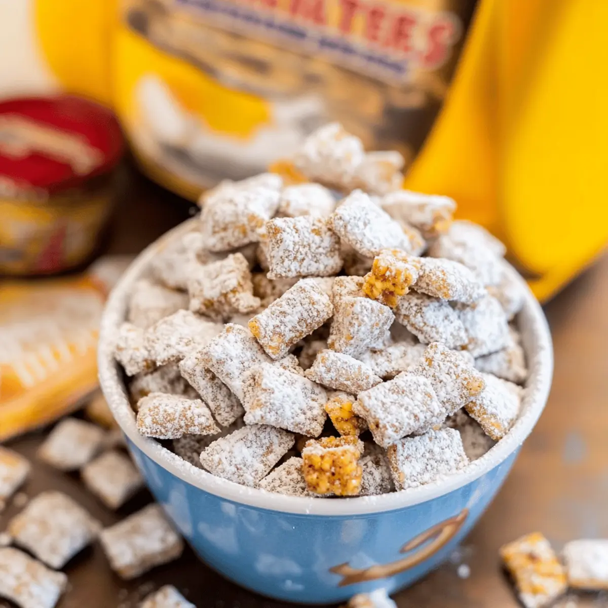 • Sift for Success: Sift your powdered sugar before coating to minimize clumps and ensure a smooth, even finish on your Butterbeer Muddy Buddies.