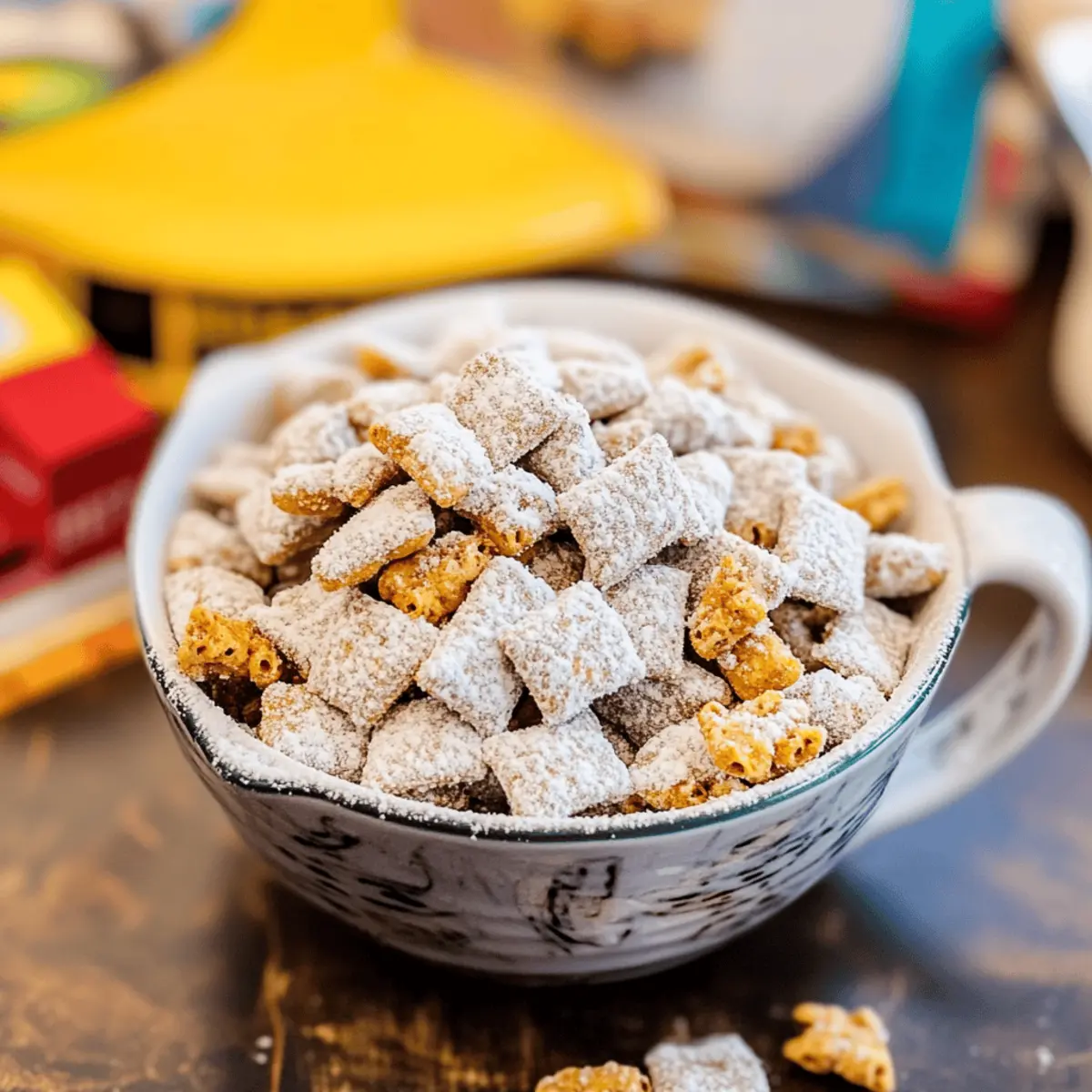 Caramel Coating: Drizzle some melted caramel over the finished Muddy Buddies for an enticing, gooey sweetness that enhances every bite.