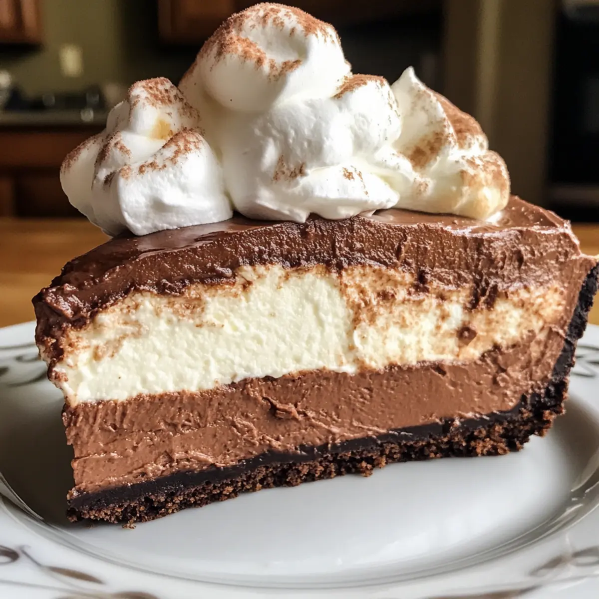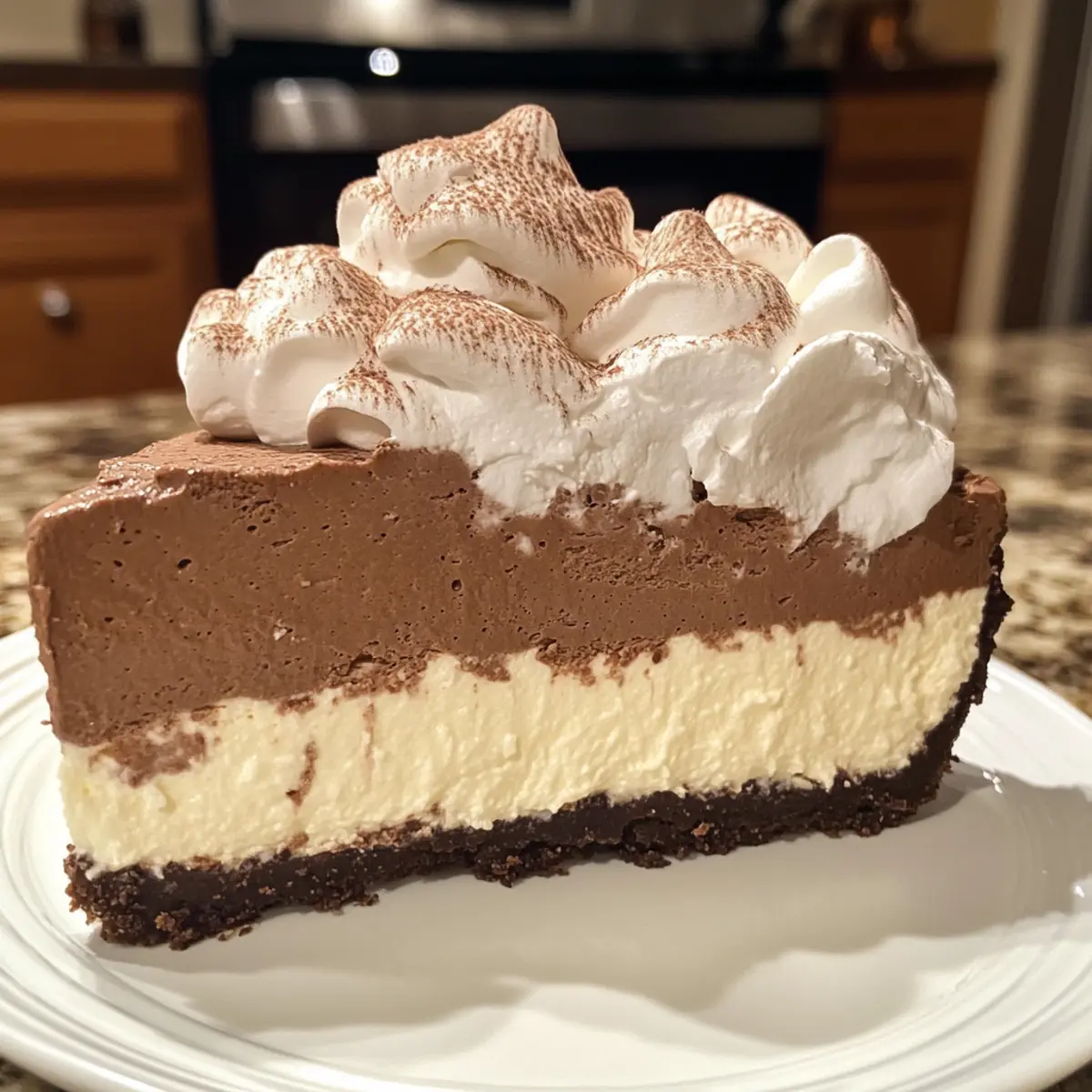 Absolutely! For a vegan version, you can substitute cream cheese with cashew cream and use coconut cream for the whipped topping. Ensure your chocolate cookie crumbs are also vegan-friendly, or opt for a nut-based crust for an alternative. Each bite can still be delicious while catering to different dietary needs!