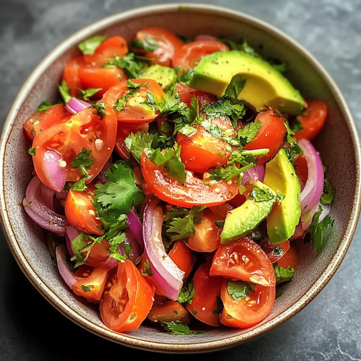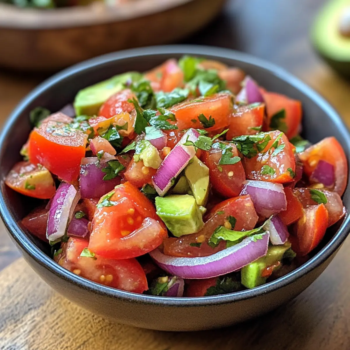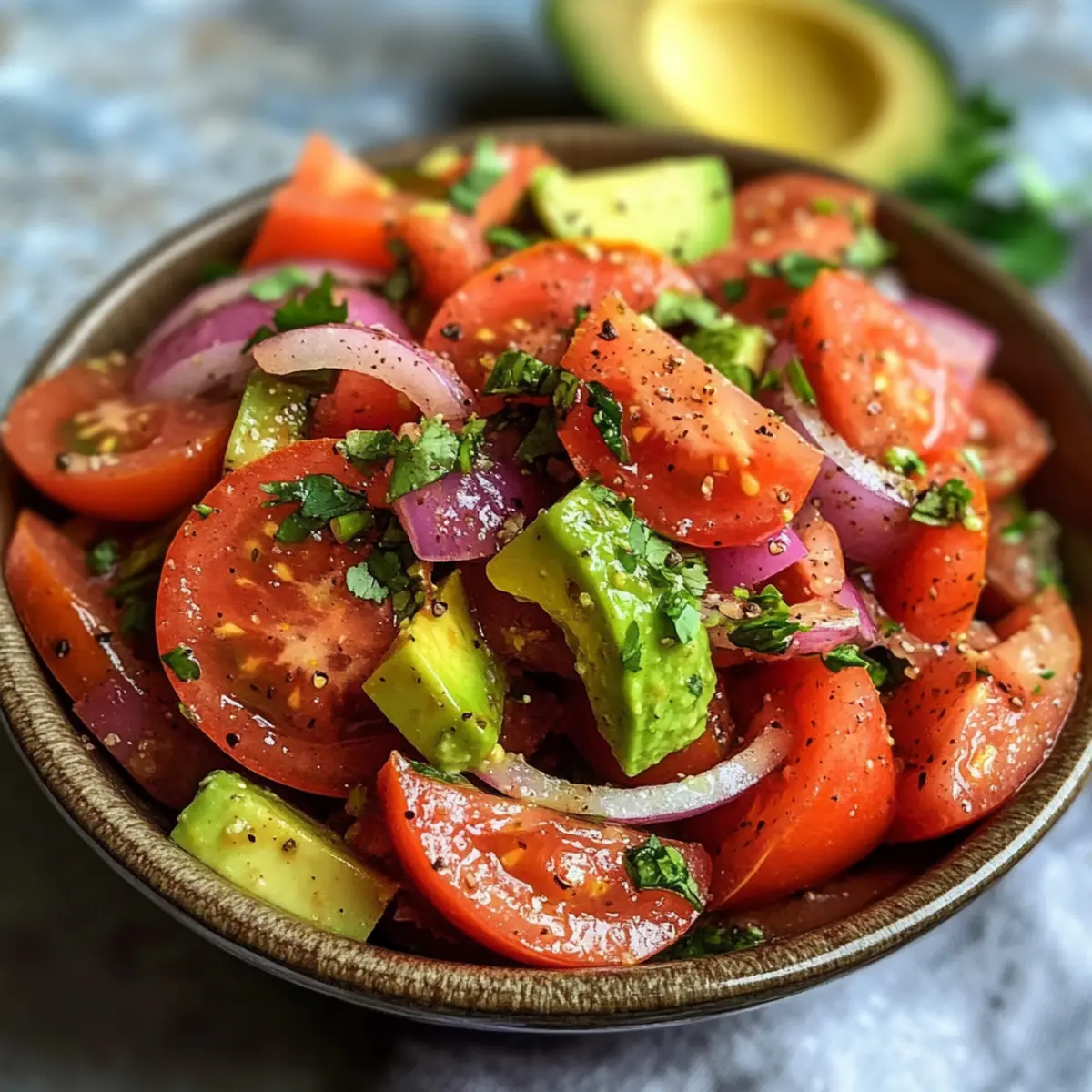 Vibrant Colors: The fresh tomatoes and avocados create a stunning visual appeal that makes this salad a feast for the eyes.
