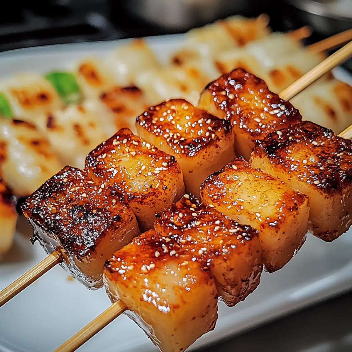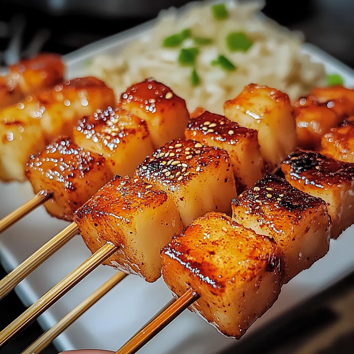 Vegetable Skewers: For a vegetarian option, include grilled vegetables like bell peppers and mushrooms alongside the rice cakes for added color and texture.