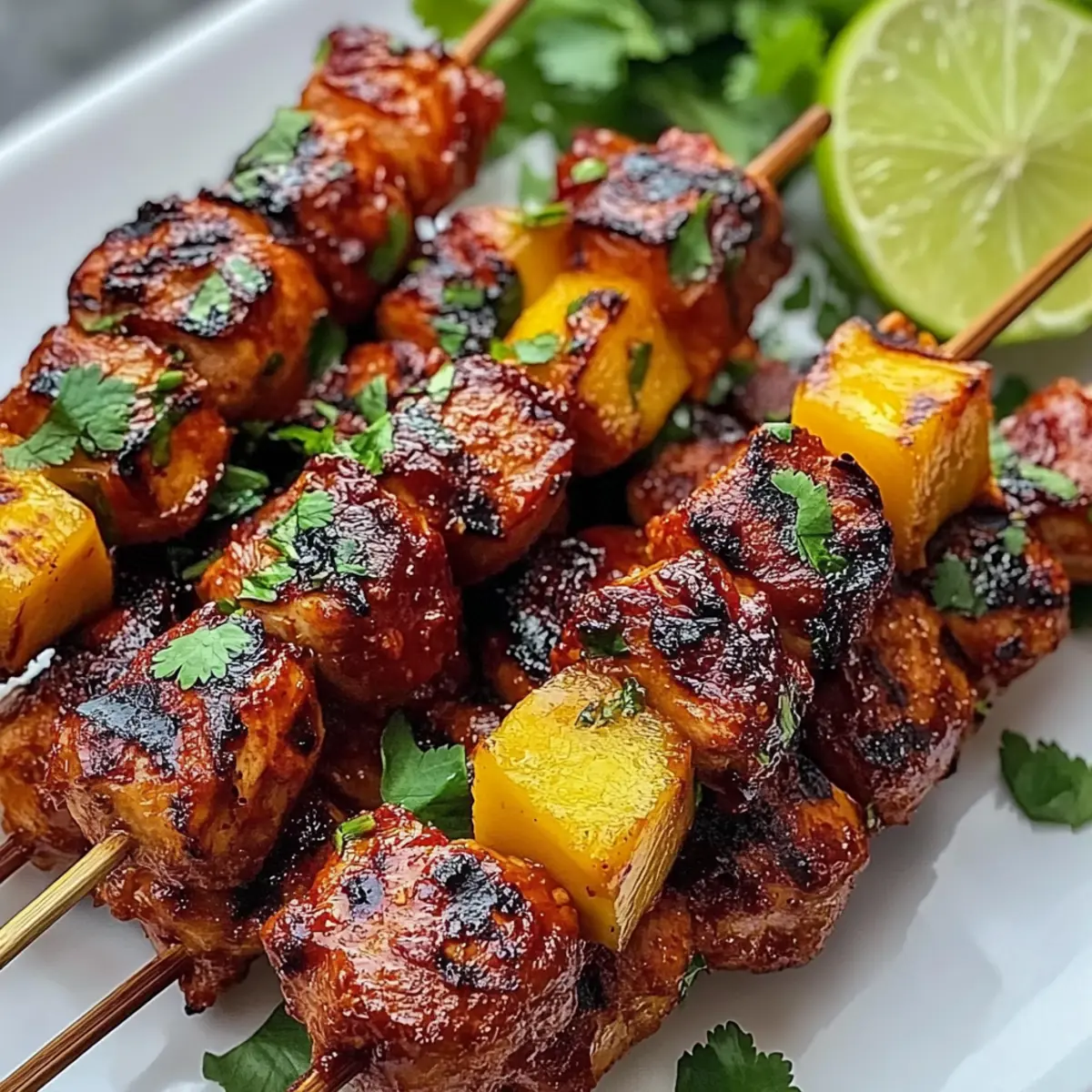 - Serve: Transfer skewers to a platter, garnish with cilantro and lime wedges, and serve immediately.