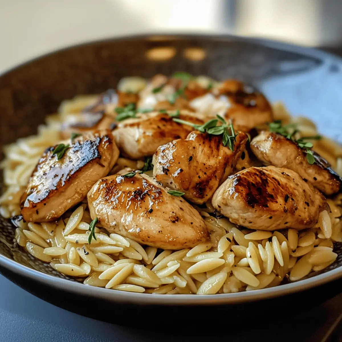 Comforting Flavors: This dish is a cozy hug for your taste buds, blending tender chicken with a rich Marsala sauce over fluffy orzo.