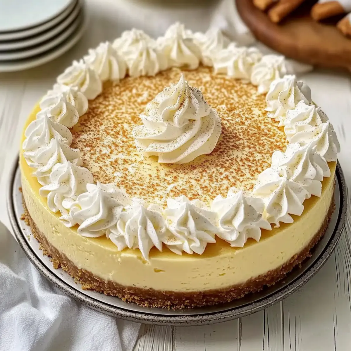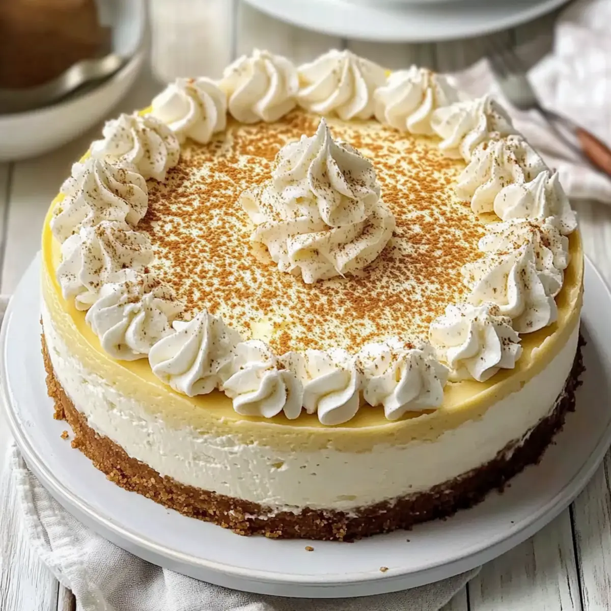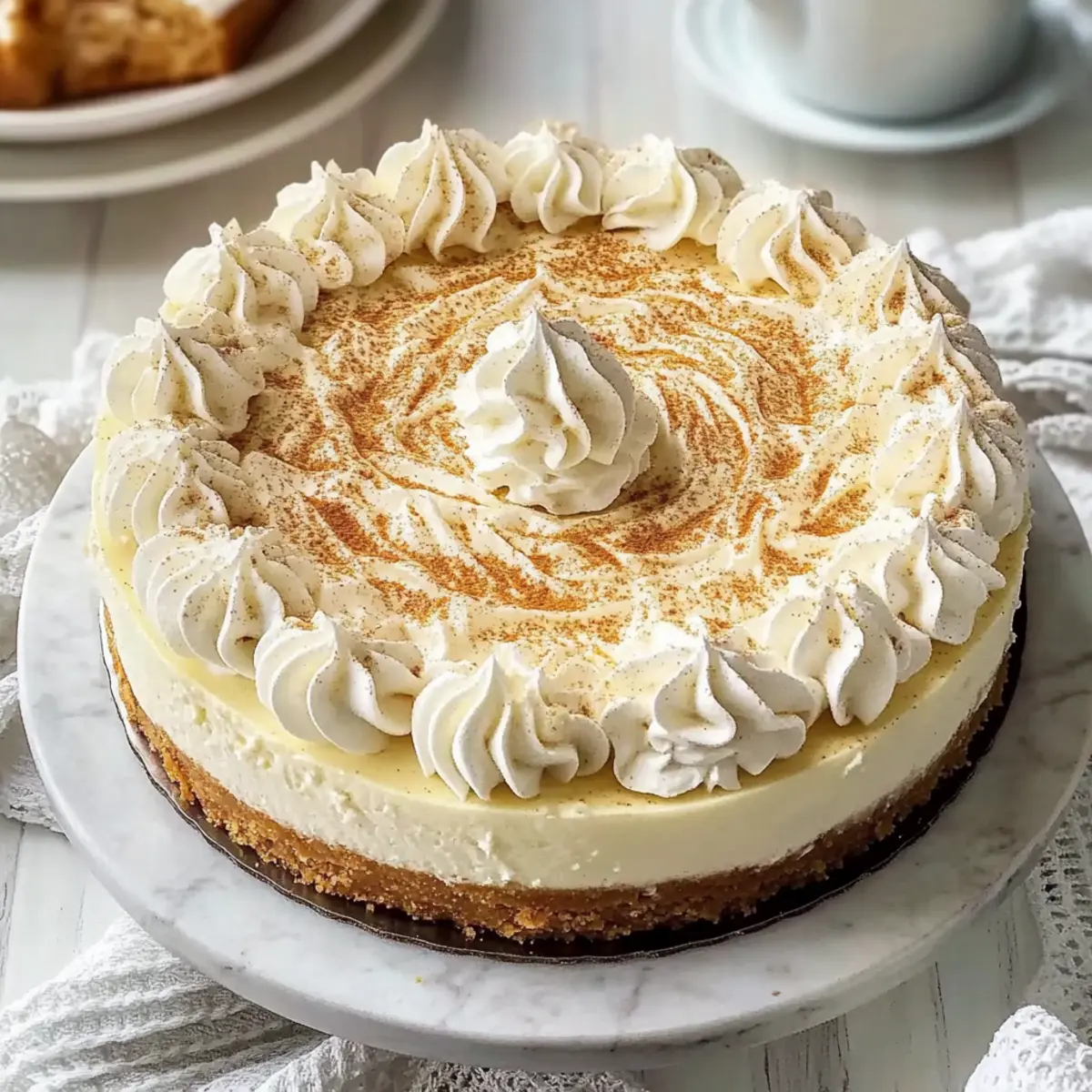 - Serve cheesecake topped with whipped cream and a sprinkle of nutmeg.