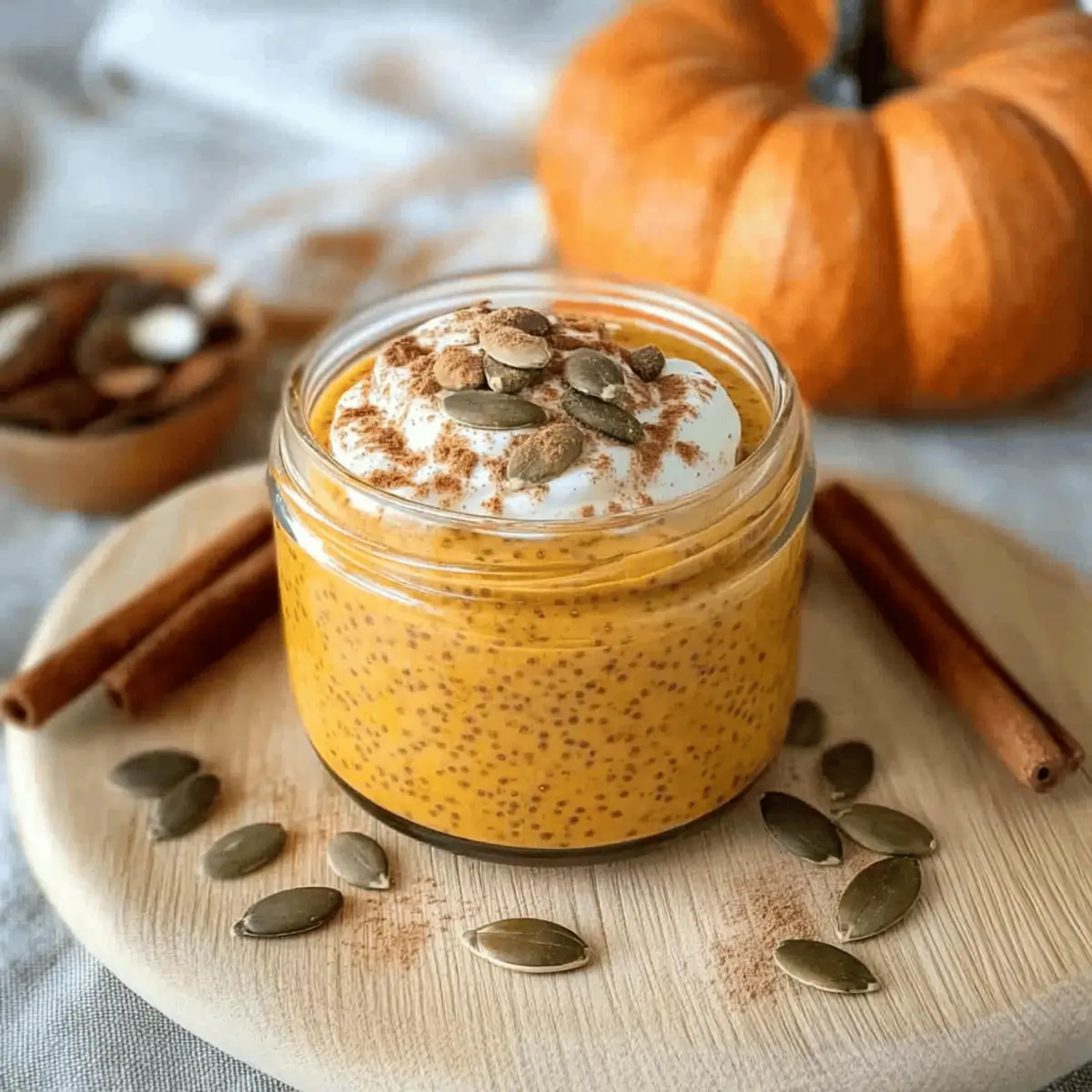 These Pumpkin Chia Seed Pudding cups are perfect for meal prep and can save you precious time during busy weeknights! You can make the entire pudding mixture up to 24 hours in advance, allowing the chia seeds to absorb the liquid properly and thicken deliciously. Prepare the base by whisking together the pumpkin puree, milk, chia seeds, sweetener, and spices, then let it chill in the refrigerator overnight for the best flavor development. To maintain quality, store them in airtight containers and give the pudding a gentle stir before serving; you can add a splash of milk if needed for creaminess. Enjoy these delightful bowls cold, topped with your favorite garnishes, for a nutritious treat anytime!