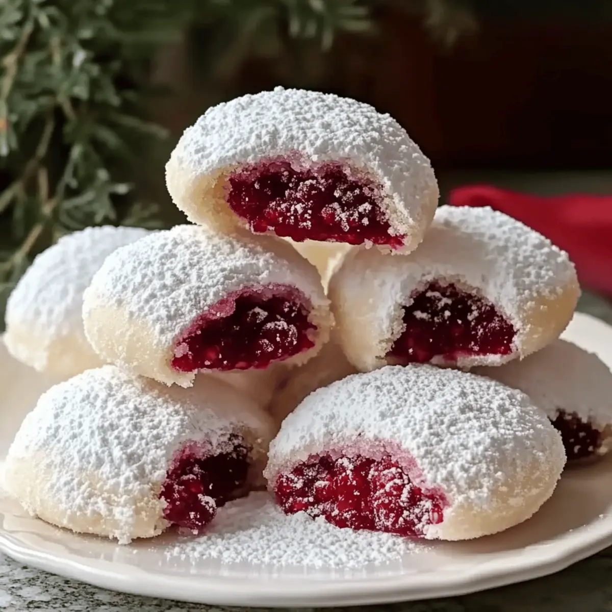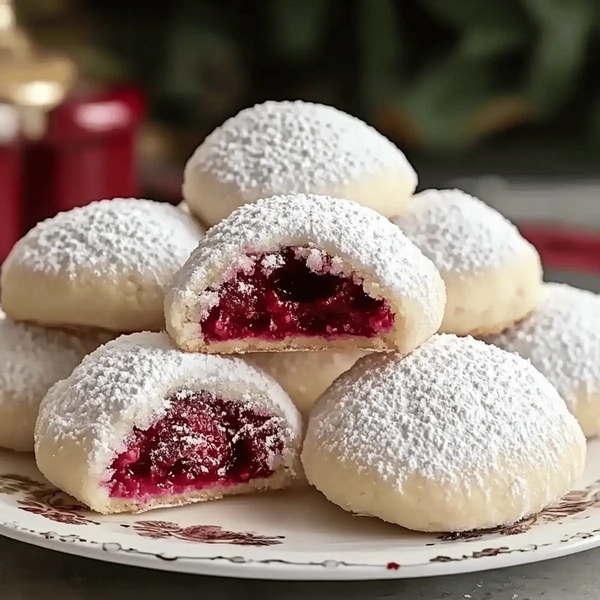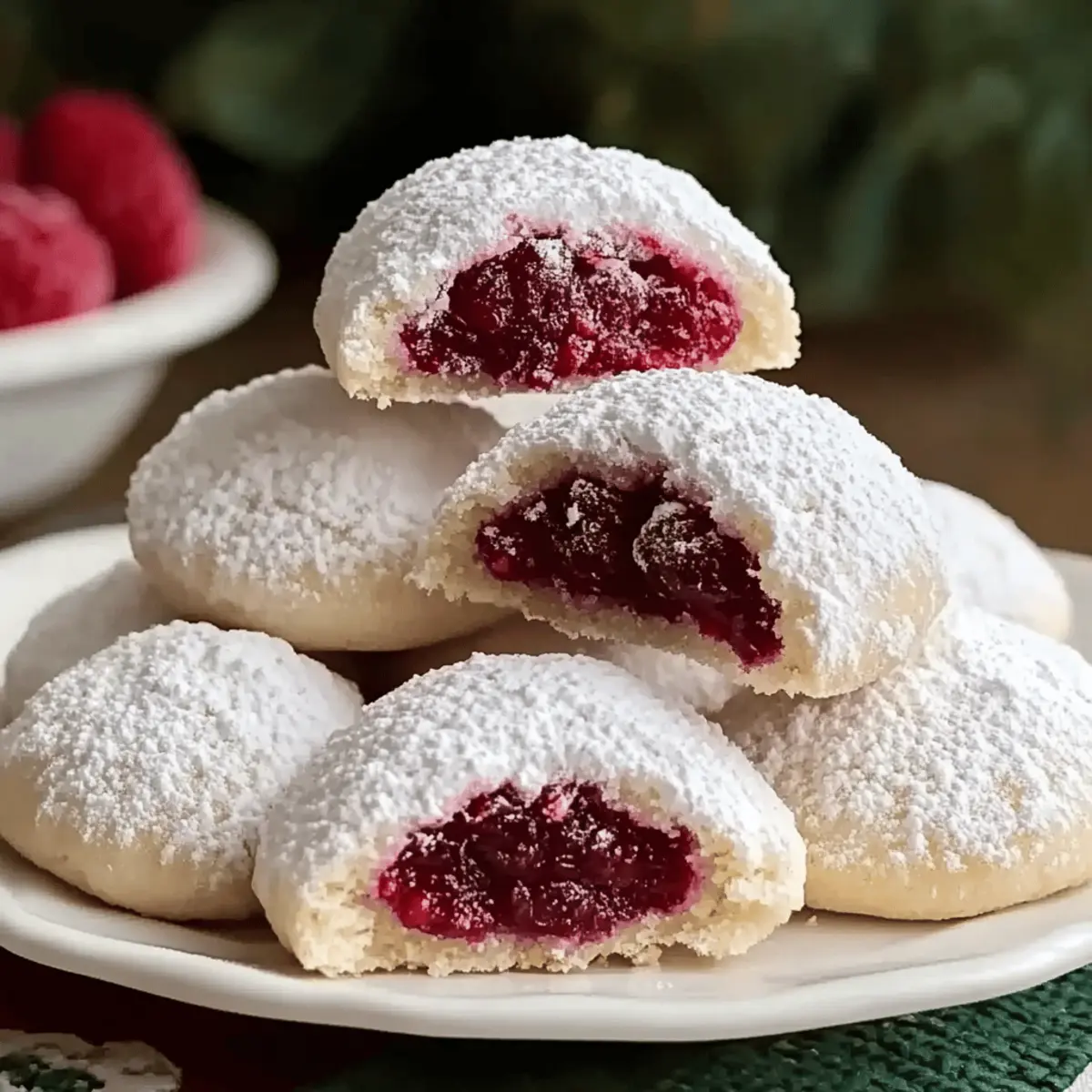 Raspberry-Filled Almond Snow Cookies that Melt in Your Mouth