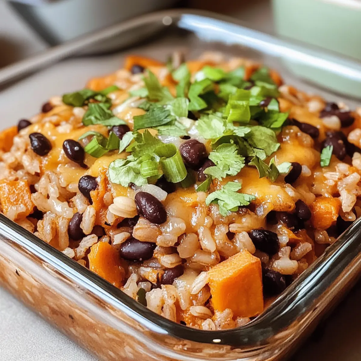 Delicious Rice and Bean Casserole with Sweet Potato Twist