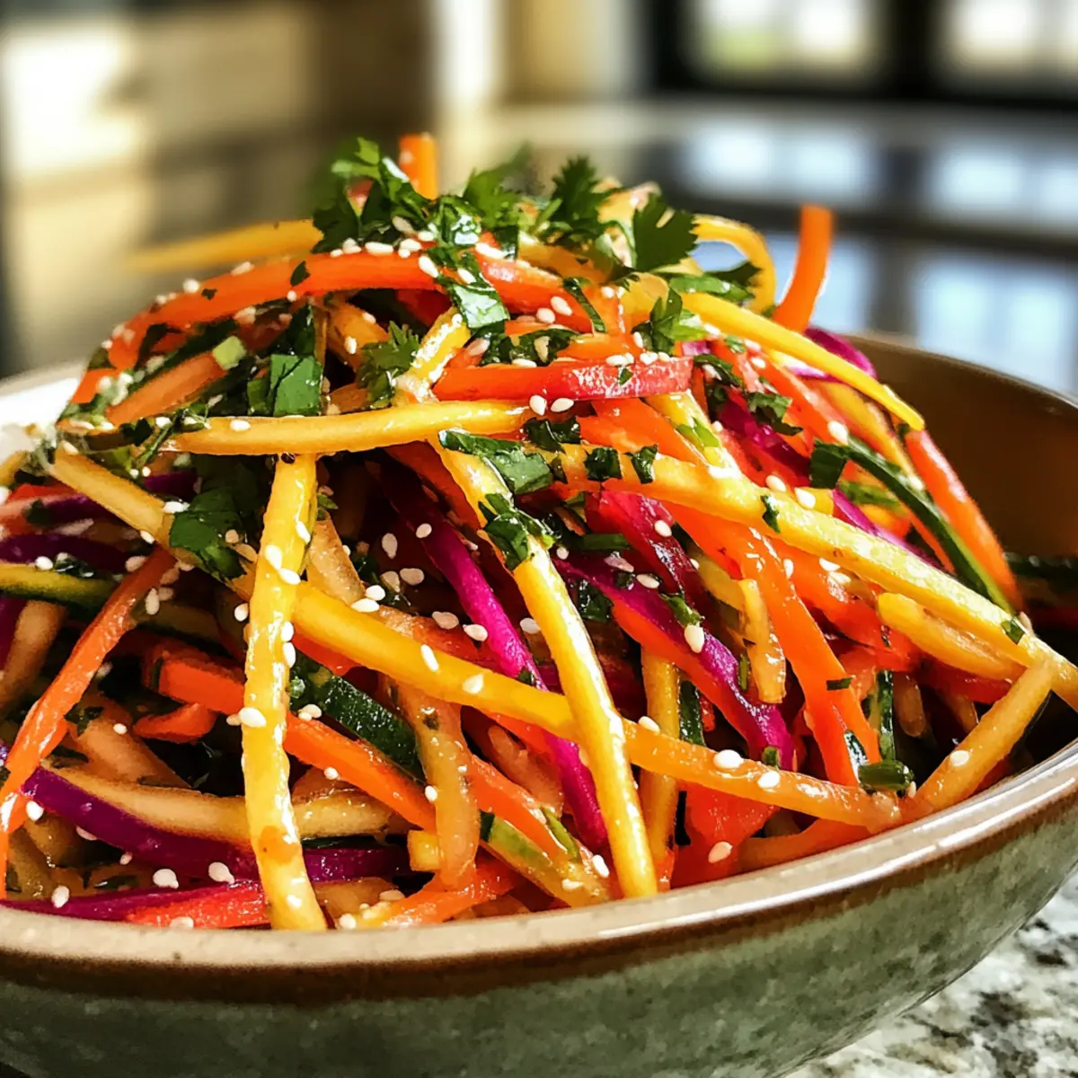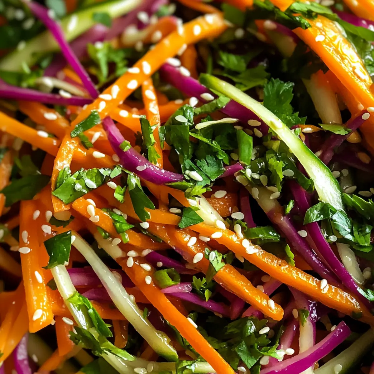 This Vibrant Shaved Rainbow Carrot Sesame Salad is perfect for meal prep! You can julienne the carrots and mix the fresh herbs up to 24 hours in advance, storing them in an airtight container in the refrigerator to keep them crisp. Additionally, prepare the dressing ahead of time and refrigerate it separately for up to 3 days. When you’re ready to serve, simply pour the dressing over the carrot mixture, toss well to coat, and let it chill for at least 30 minutes. This way, you’ll enjoy a deliciously fresh and vibrant salad with minimal effort on busy days!