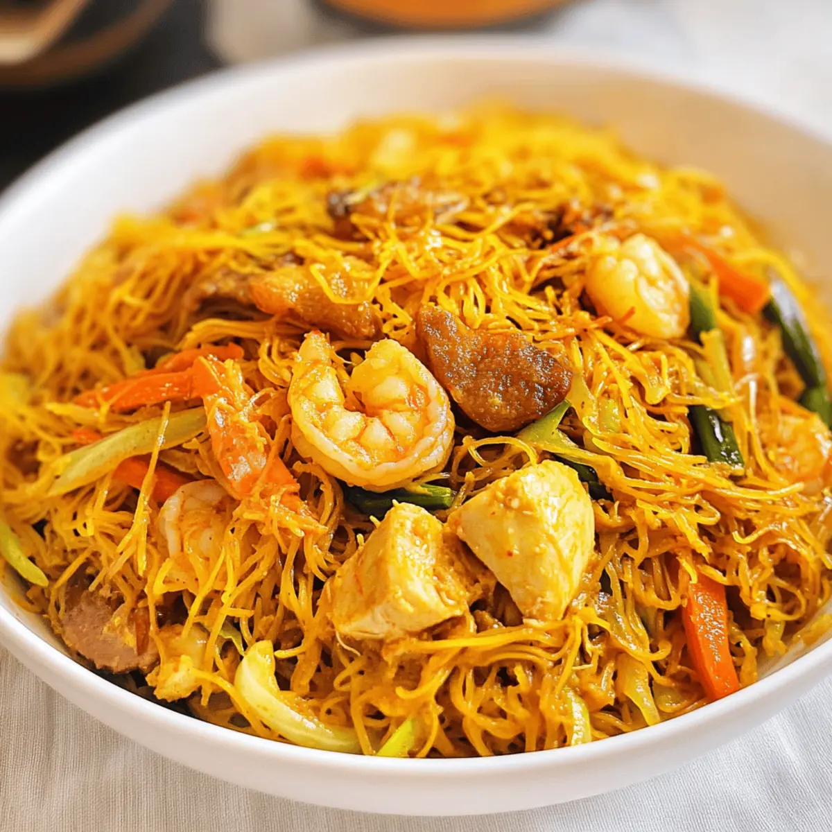 As the aromatic scent of curry wafts through the kitchen, I can’t help but feel transported to the bustling food markets of Singapore, where vibrant street food comes alive. Today, I’m excited to share my recipe for Quick and Flavorful Singapore Noodles (Singapore Mei Fun), a delightful and colorful rice noodle stir fry that’s not only easy to whip up in 30 minutes but also perfect for weeknight dinners. This dish pairs perfectly tender chicken and succulent shrimp with a medley of fresh vegetables, making it a satisfying staple for any homemade meal. Plus, it’s a wonderful option for those seeking gluten-free alternatives while still delivering all the savory goodness you crave. Ready to dive into a bowl of cheerful noodles? Let’s get cooking!