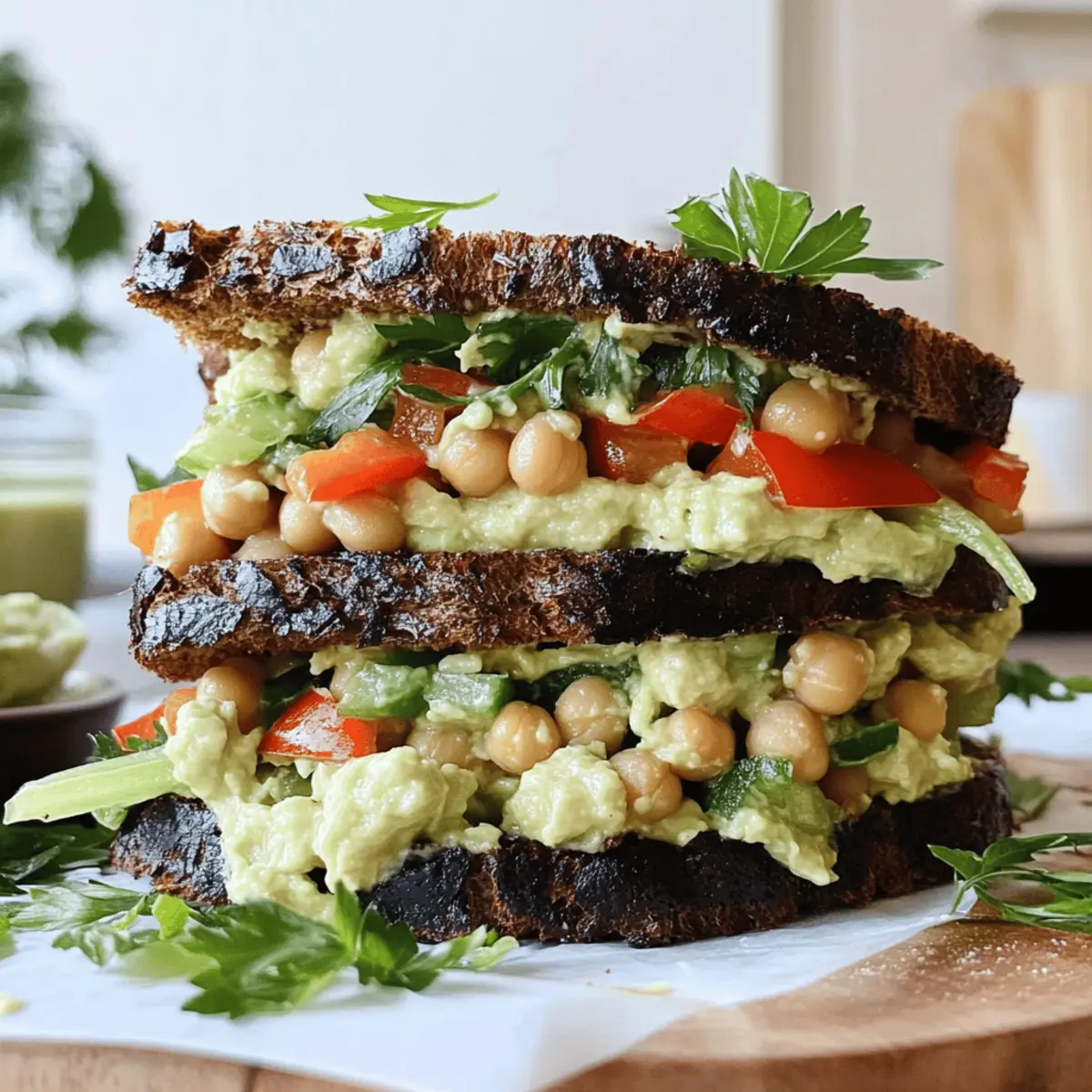 These Smashed Chickpea Salad Sandwiches are a dream come true for busy home cooks looking to save time! You can prepare the chickpea mixture up to 3 days in advance, ensuring all the flavors meld beautifully while stored in an airtight container in the refrigerator. The avocado aioli can also be made ahead and kept for up to 24 hours, but for the freshest flavor and creamy texture, it’s best to mix it in just before serving. To maintain quality, chill the salad for at least 30 minutes before using, and remember to give it a gentle stir if it has been in the fridge. When ready to serve, simply spoon the delicious mixture onto your choice of bread or crisp lettuce, and enjoy a delightful, nutritious meal!