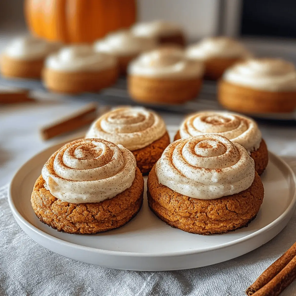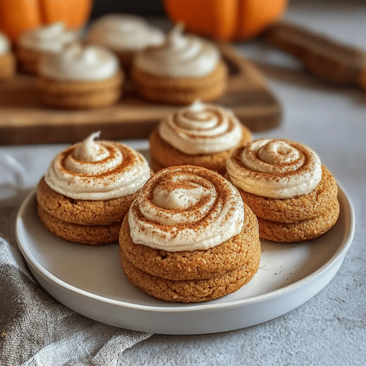 In a mixing bowl, beat the softened cream cheese and butter together until smooth and creamy, about 2–3 minutes. Gradually add the powdered sugar, mixing until combined, then stir in a splash of milk or heavy cream until you reach the desired consistency. The frosting should be rich and creamy, perfect for spreading on your cooled Soft Pumpkin Cookies.