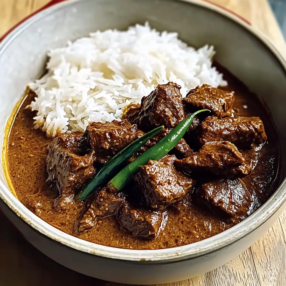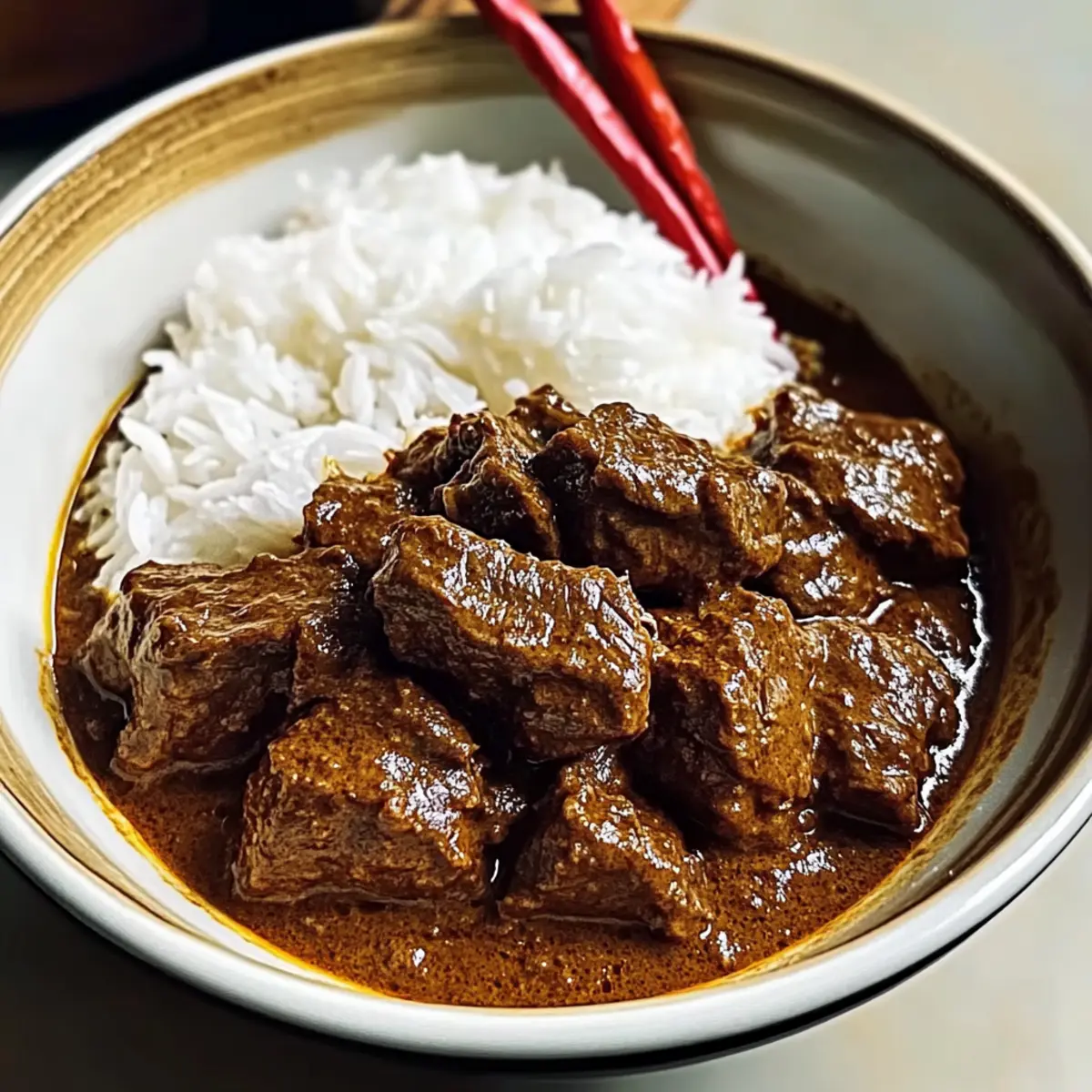 Rich and Creamy: The creamy coconut milk envelops the tender beef in a luscious sauce that’s simply irresistible.
