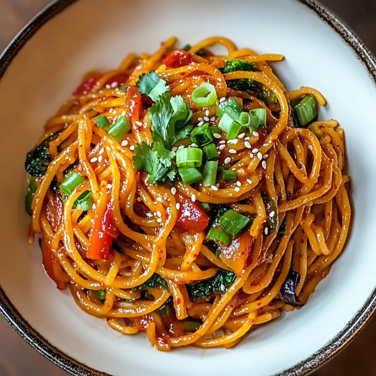 As I stood in my kitchen, the comforting aroma of garlic mingled with the bold, spicy notes of gochujang, I knew I was onto something special. This Spicy Korean Gochujang Pasta is my go-to quick meal during those busy weeknights when I crave both warmth and adventure. In just 25 minutes, you can whip up this delightful fusion dish that combines the heartiness of Italian pasta with the vibrant flavors of Korean cuisine. Not only is this recipe incredibly easy to make, but it also packs in a rainbow of veggies, making it a fantastic choice for anyone looking to elevate their dinner game without a fuss. Are you ready to embrace this flavorful twist on pasta? Let’s dive in!
