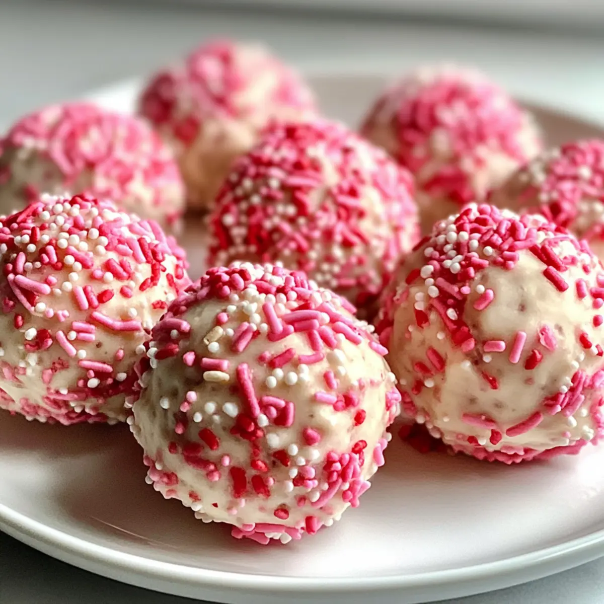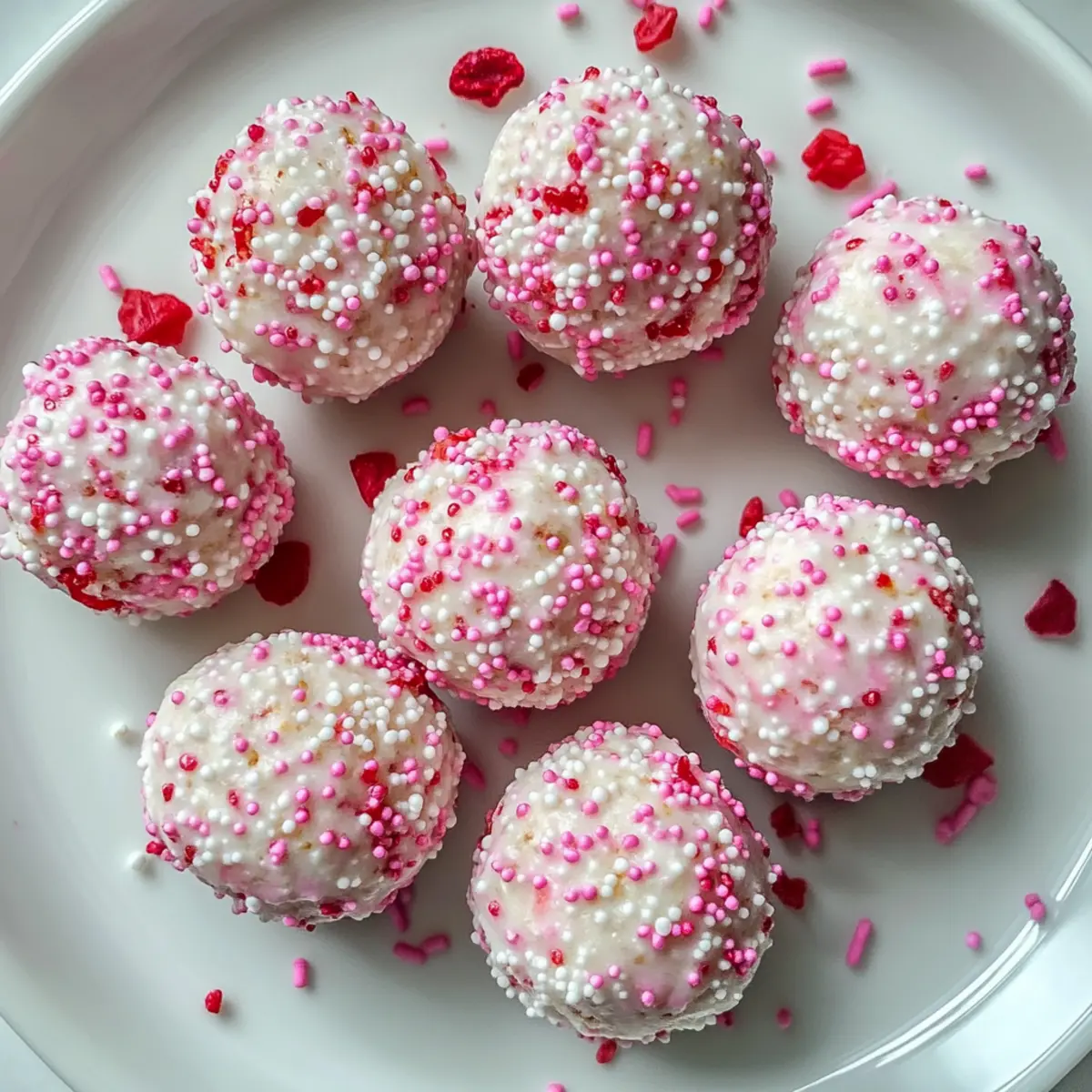 - Optional: Roll each ball in pink/red sprinkles or extra crushed strawberries for a fun coating.