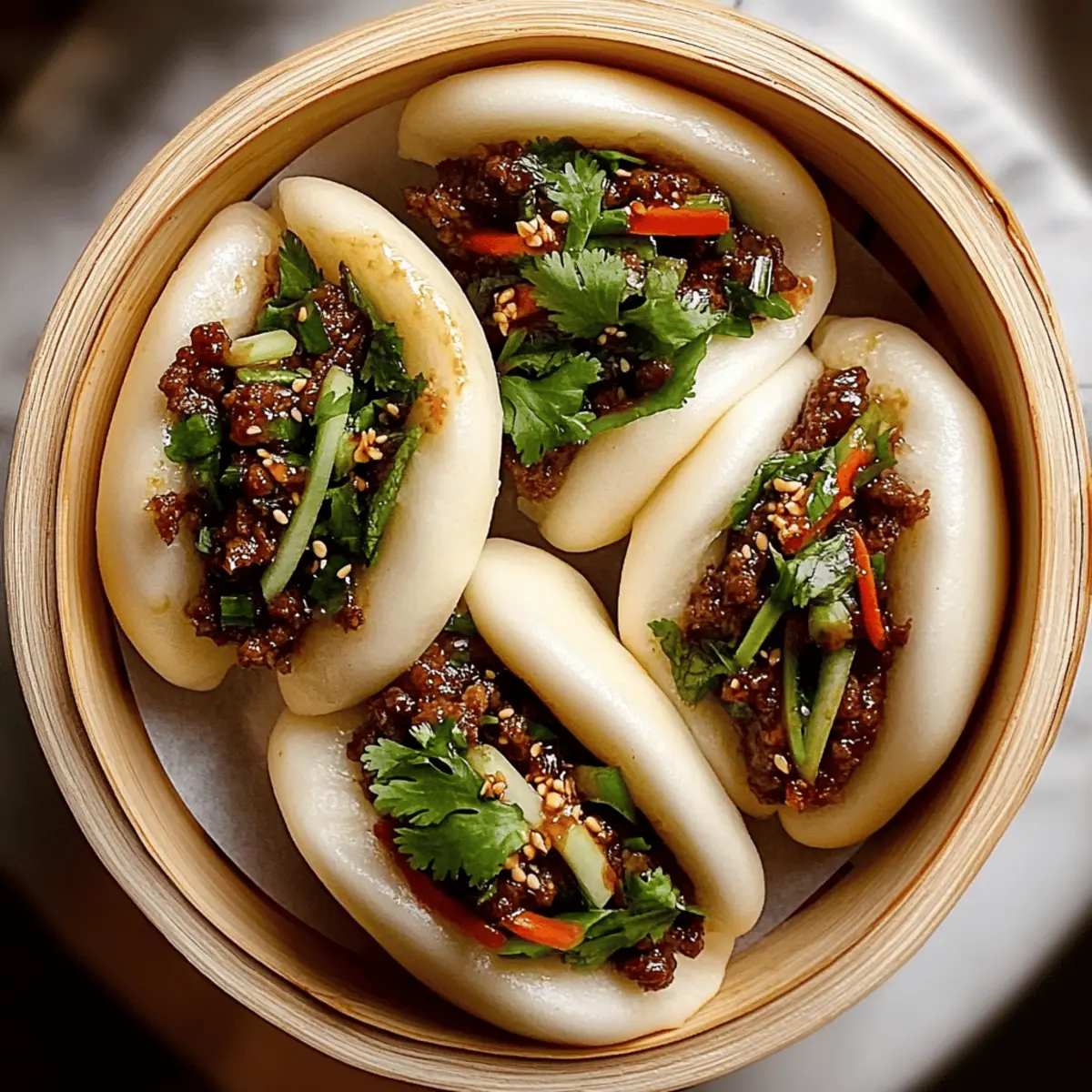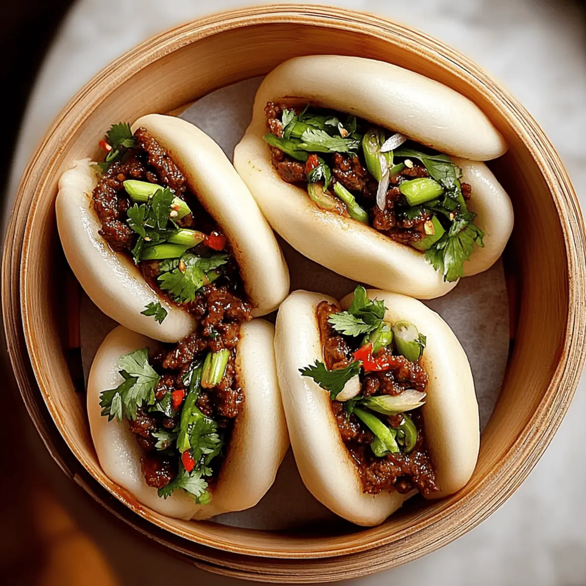Serving: Enjoy your Tender Beef Bao Buns warm, garnished with fresh herbs, for the best flavor experience!