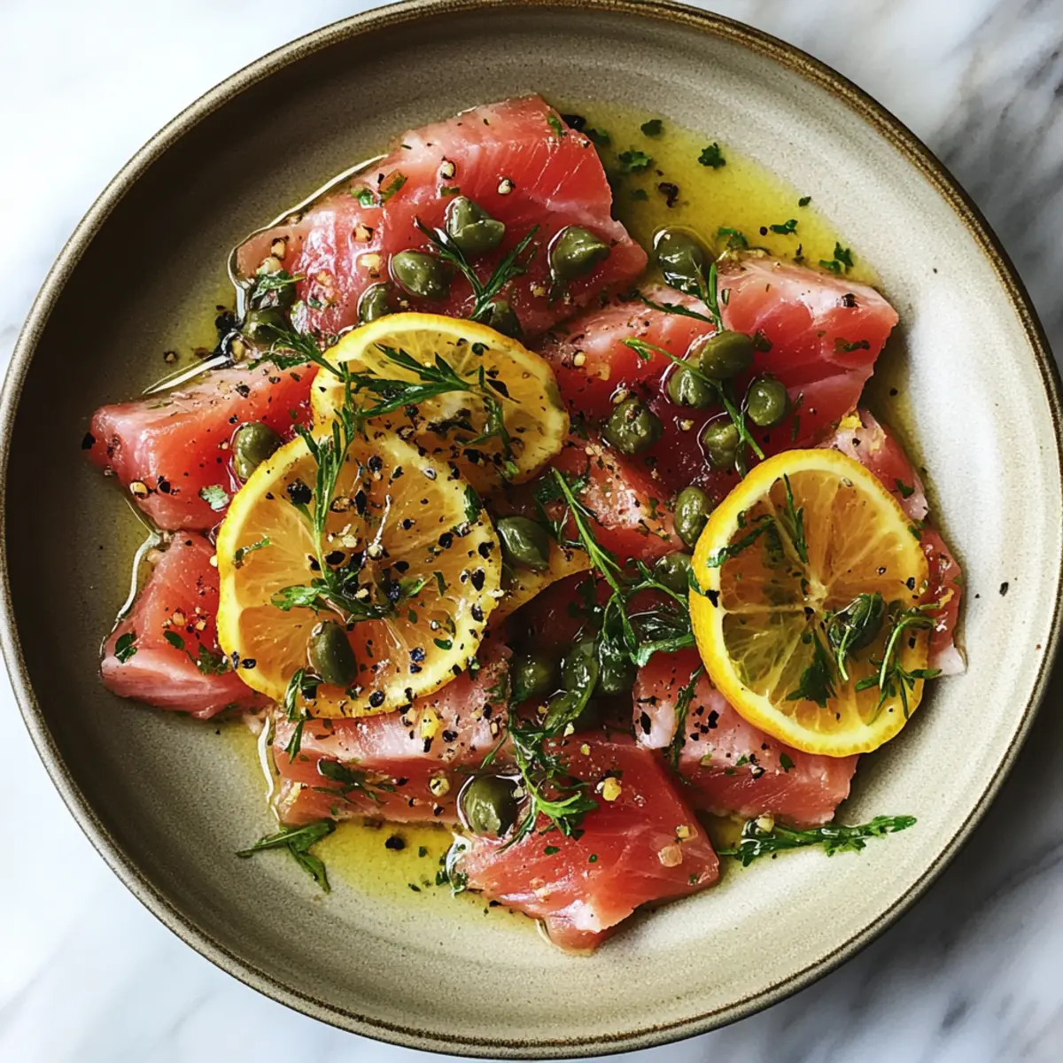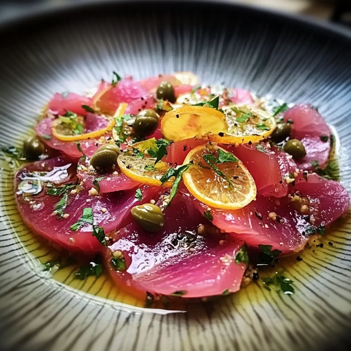 Stepping into my kitchen, I can almost taste the ocean breeze wafting in, the enticing aroma of fresh seafood awaiting transformation. Today, I’m thrilled to share my recipe for Tuna Crudo with Citrus Caper Vinaigrette—a dish that captures the essence of culinary elegance with minimal effort. This vibrant creation showcases the delicate texture of raw tuna harmonizing with zesty citrus and briny capers, making it the perfect starter or light meal for any occasion. Not only is it quick to prepare, but it also adds a touch of sophistication to your dining table—ideal for impressing guests or indulging in a gourmet treat at home. Can you envision how easy it is to delight in such freshness? Let’s dive into this delightful recipe together!