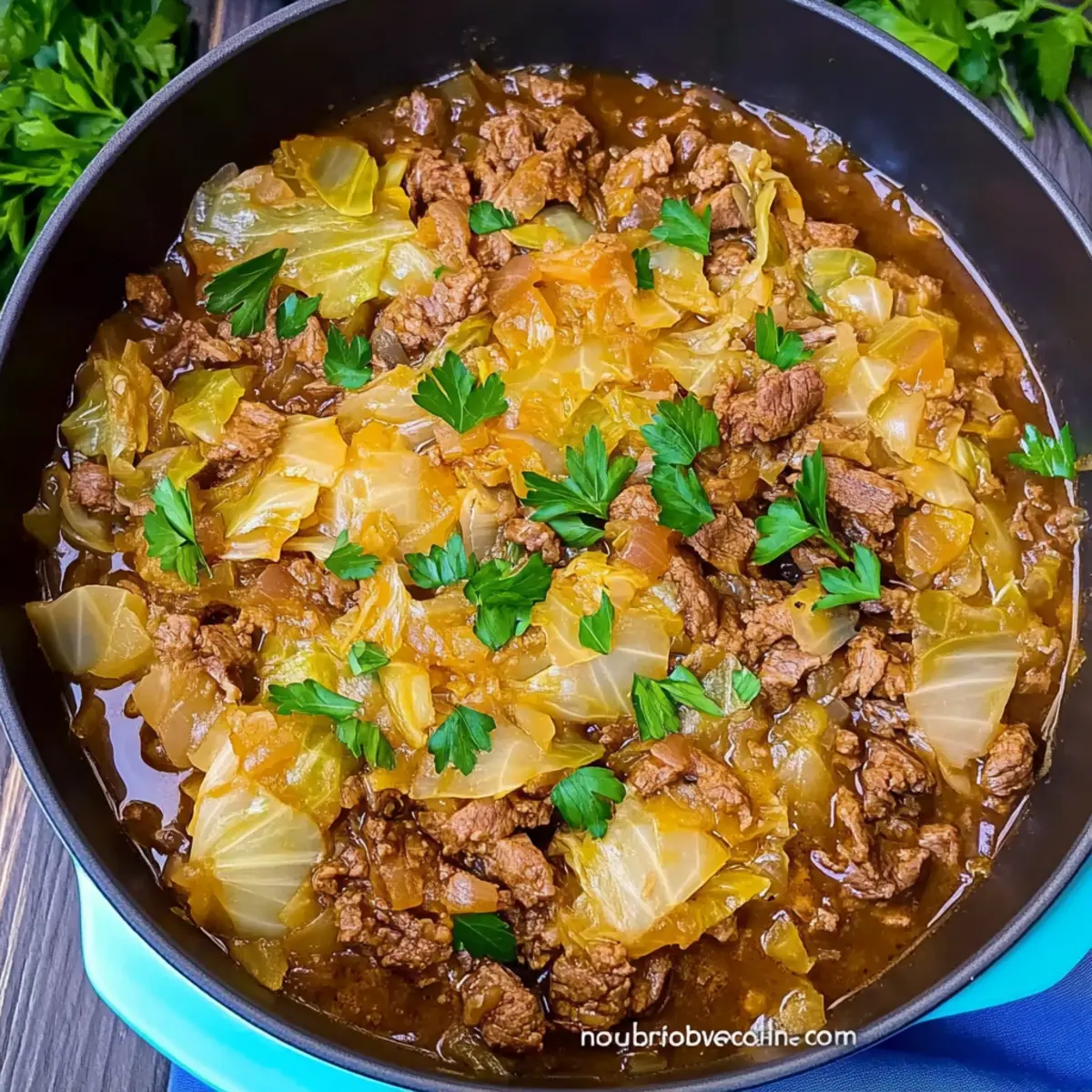 Preparing Turkish Cabbage Stew in advance is a perfect way to save time during your busy week! You can chop the cabbage and onion up to 24 hours ahead of time, storing them in an airtight container in the refrigerator to maintain their crispness. Additionally, you can brown the ground beef and mix in all the seasoning, allowing it to marinate in the fridge for up to 3 days. When you’re ready to serve, simply sauté the onions, add your prepped beef mixture, incorporate the cabbage and broth, and simmer until tender. This method ensures your stew remains just as delicious while saving you valuable cooking time!