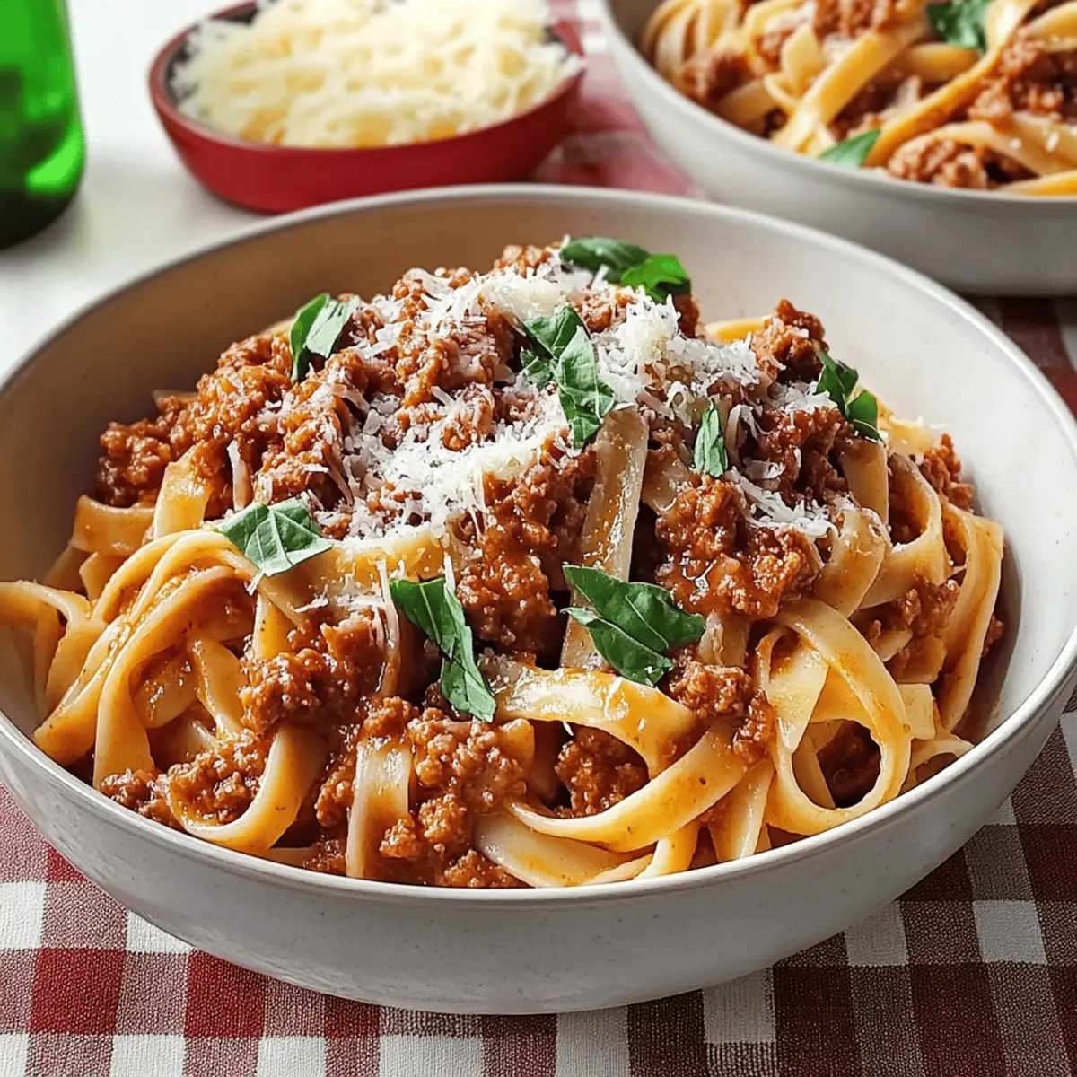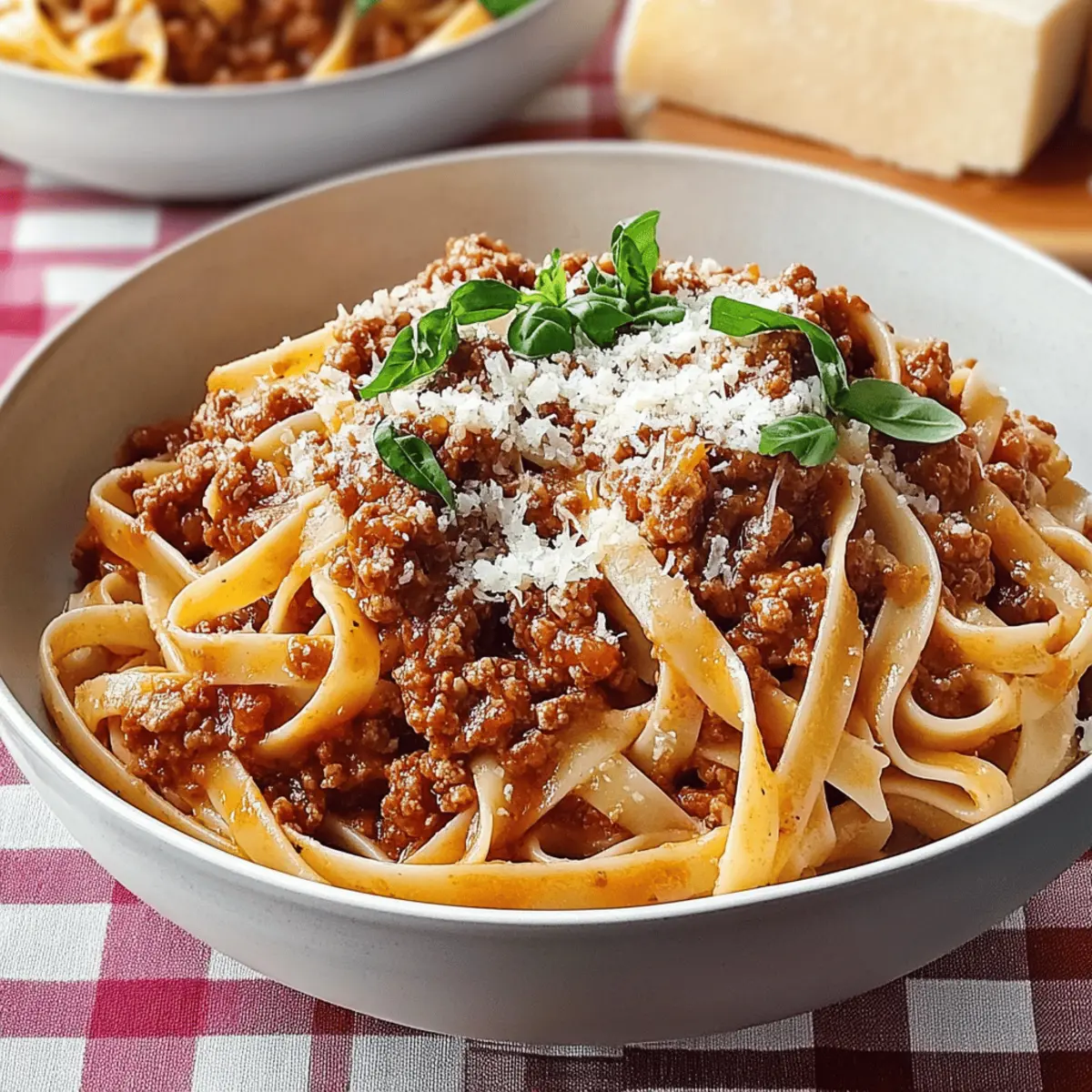 - Grated Parmesan Cheese (1/2 cup) – Complements the Bolognese rich flavor.