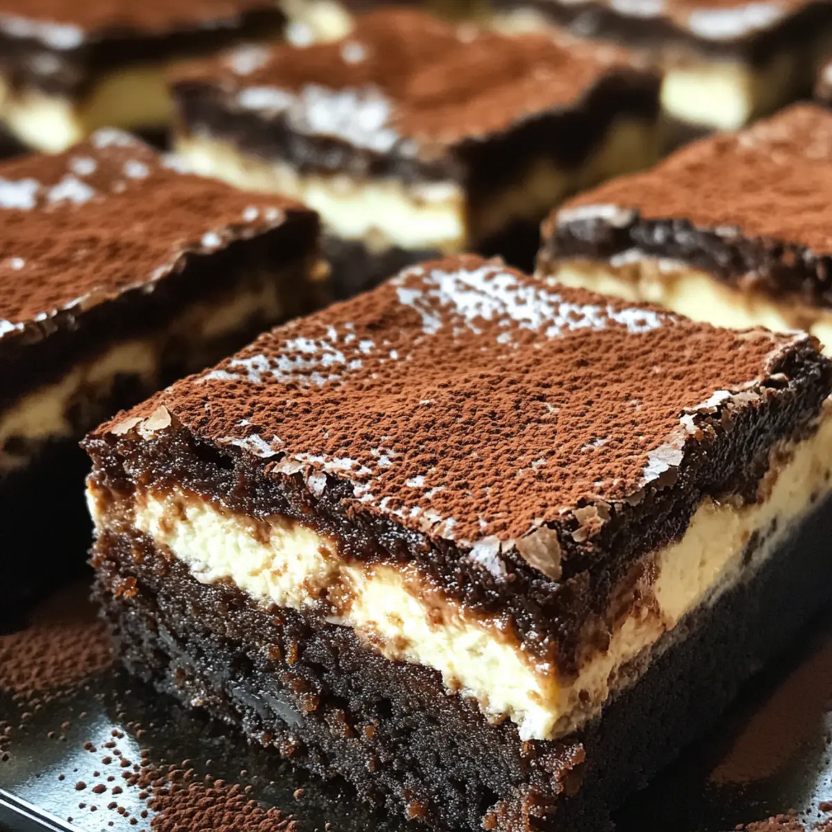 These Vegan Gingerbread Tiramisu Brownies are perfect for meal prep enthusiasts! You can prepare the brownie layer and ladyfingers up to 24 hours in advance. Simply bake and allow the brownies to cool completely, then store them in an airtight container in the fridge. The ladyfingers can be whipped and baked ahead, ensuring they stay light and fluffy. For the mascarpone cream, you can blend it and refrigerate it for up to 3 days; simply re-mix before use to restore its silkiness. When ready to serve, assemble the layers with espresso-soaked ladyfingers and cream, dusting with cocoa powder for a delightful finish. Enjoy time-saving benefits while creating a show-stopping dessert!